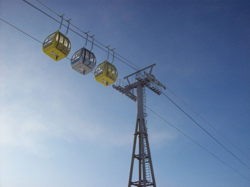 2004年11月8日一次試車成功, 2004年12月2日通過國家和地方有關(guān)部門的驗收,正式交付運營。索道位于內(nèi)蒙牙克石市東南約16公里處,型式為單線循環(huán)固定抱索器吊廂組式,線路水平距離2818米,高差287.7米,單向小時運量300人。