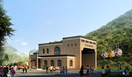 2012年9月竣工完成。索道位于陜西省銅川市照金-香山風景名勝區,型式為單線脈動循環固定抱索器吊廂組式,線路水平距離400米,高差222米,單向小時運量400人,運行速度3.08米/秒。采用新型大功率液壓站,滿足了張緊系統行程變化要求,效果良好。