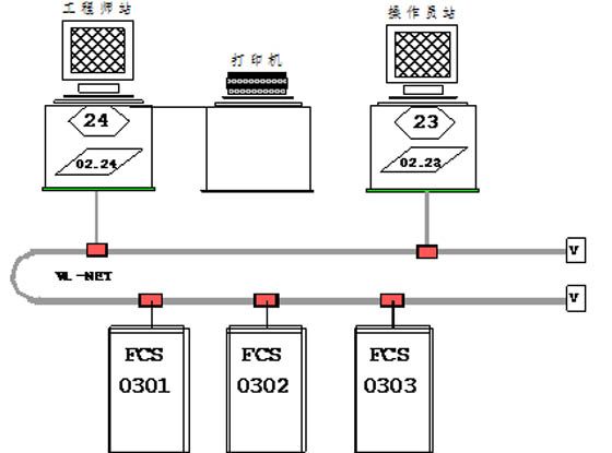 6000KW電站DCS控制系統由三個控制站、一個工程師站及一個操作員站構成。控制系統構成圖如下:
